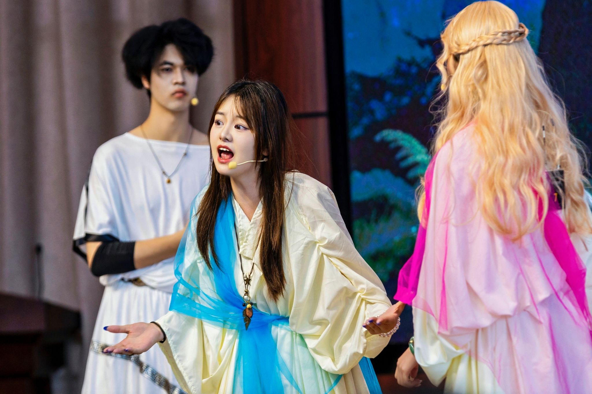 《仲夏夜之梦》讲述了两对雅典年轻男女因反抗父命与单恋纠葛先后闯入奇幻森林,在仙王与精灵的爱情魔药“乱点鸳鸯谱”后,引发连串误会最后终成眷属的奇幻故事。比赛现场,我校选手凭借流畅的英文台词、精准的神态与富有张力的肢体语言,生动呈现了赫米娅的果敢坚定、拉山德的炽热纯粹、海丽娜的执着痴情、狄米特律斯的直率坦荡、公爵忒休斯的庄重沉稳、父亲伊吉斯的固执严苛,以及精灵迫克的俏皮灵动、仙王奥布朗的威严睿智,将观众带入一场误会与真爱交织的森林奇遇。谢幕环节,团队创意设计的“求婚”“共舞”“致歉”等温情彩蛋,赢得全场喝彩,为这场奇幻爱情之旅画上圆满而难忘的句点,最终以第二名的成绩荣获佳绩。