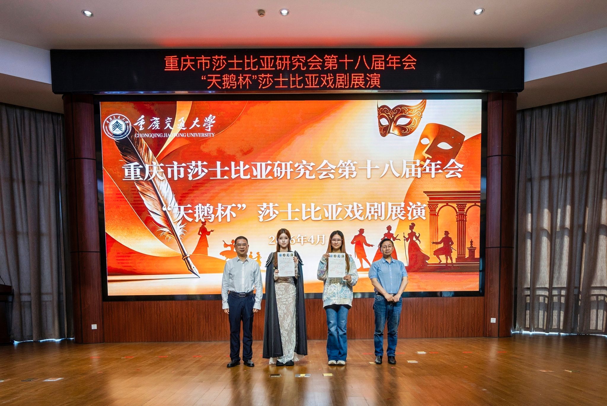 2026年4月25日,重庆市莎士比亚研究会第十八届年会“天鹅杯”莎士比亚戏剧汇演在重庆交通大学科学城校区落下帷幕。免费足球直播