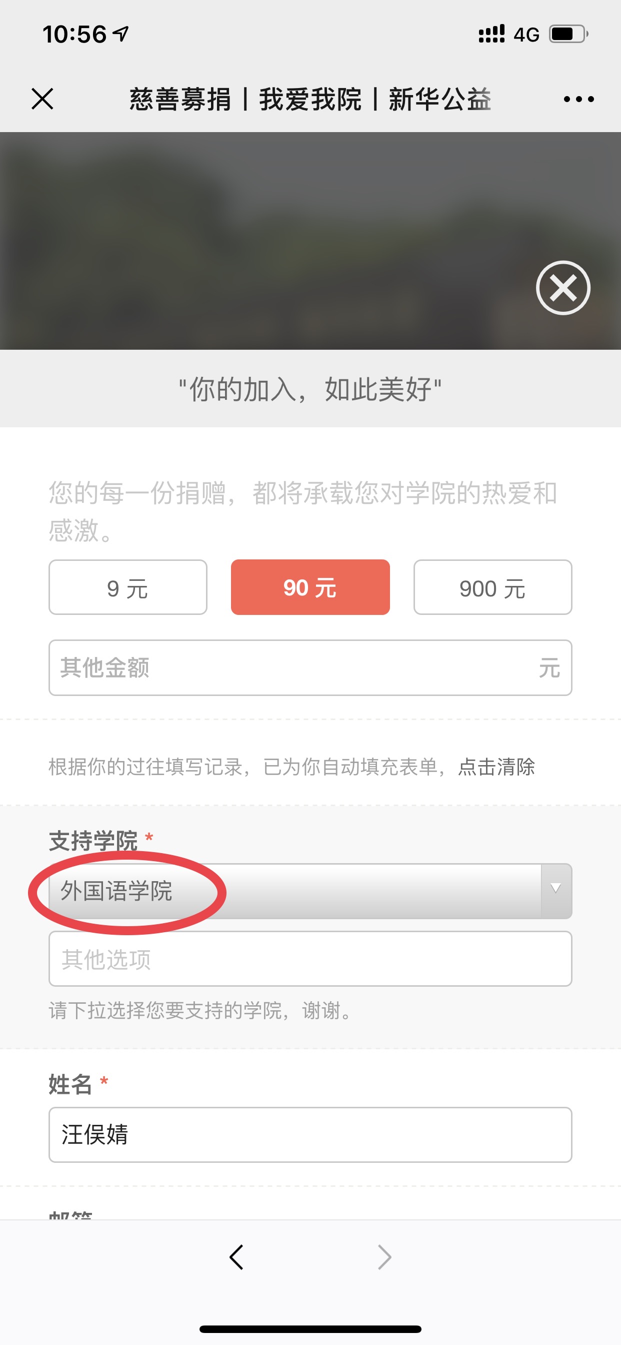 ,选择金额,填写信息包括姓名、邮箱(便于电子版感谢信邮寄)、手机等。
